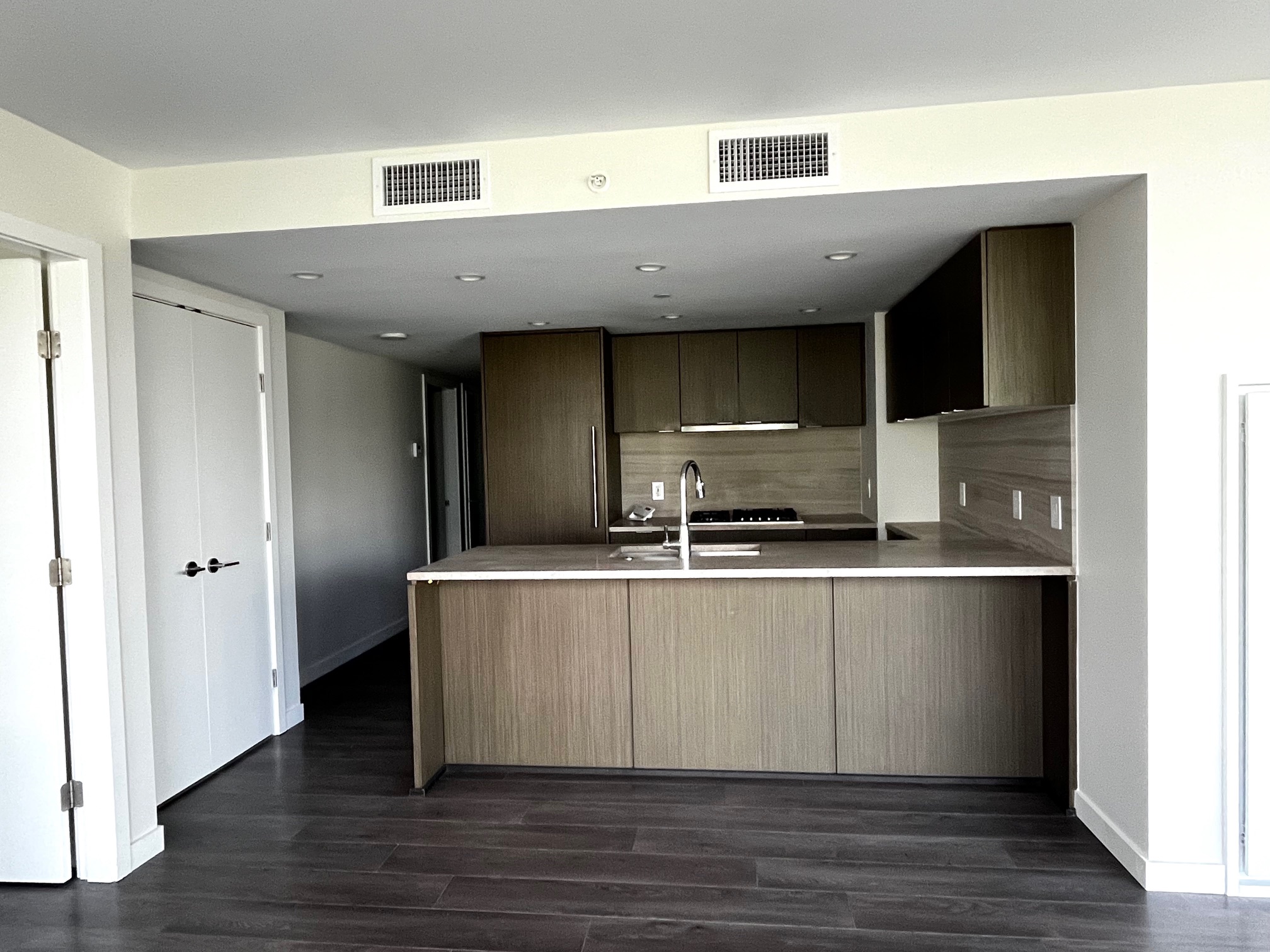 This bright corner suit features a spacious main living area with beautiful views. The living area extends out to the covered balcony with hookup for BBQ. The open kitchen is modern with built-in appliances and a gas cooktop.