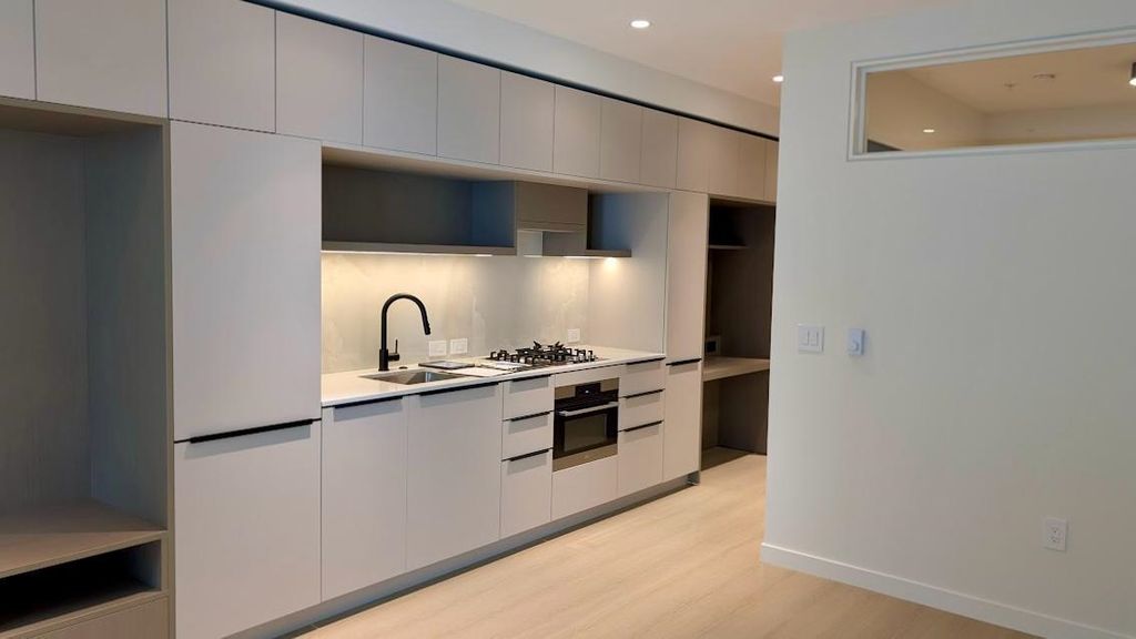 This thoughtfully designed suite offers a bright, modern interior with an efficient, open-concept layout that maximizes every square foot. The living and dining area is filled with natural light, creating a warm and inviting space to relax or entertain. The contemporary kitchen features integrated high quality appliances and ample cabinetry.