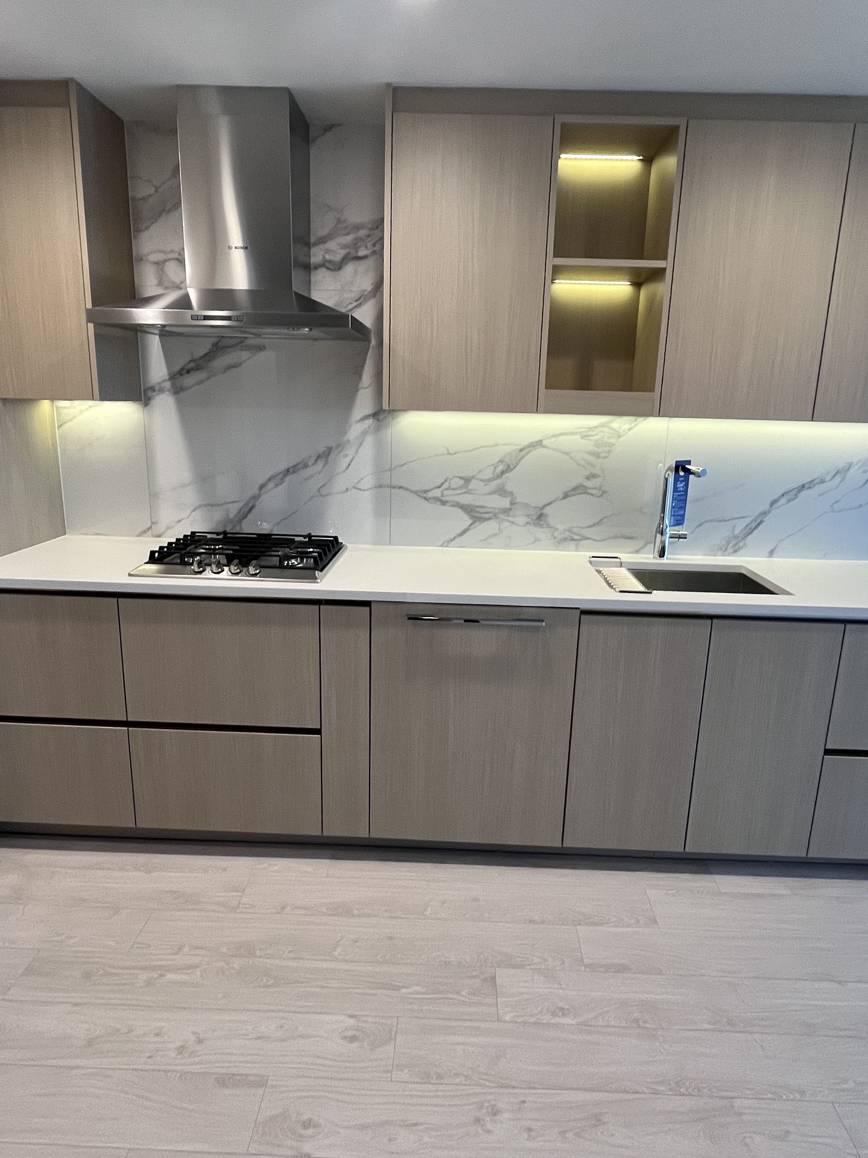 * Modern kitchen with integrated stainless steel Bosch appliance package: